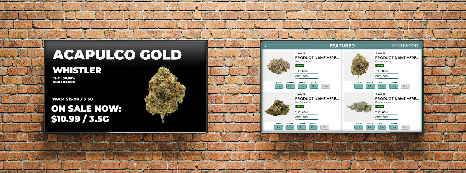 When it comes to the Promo TVs, cannabis retailers are able to utilize content from their digital signage provider or upload their own. Retailers can choose to have static feature board content or create dynamic ads to draw more attention to a product.